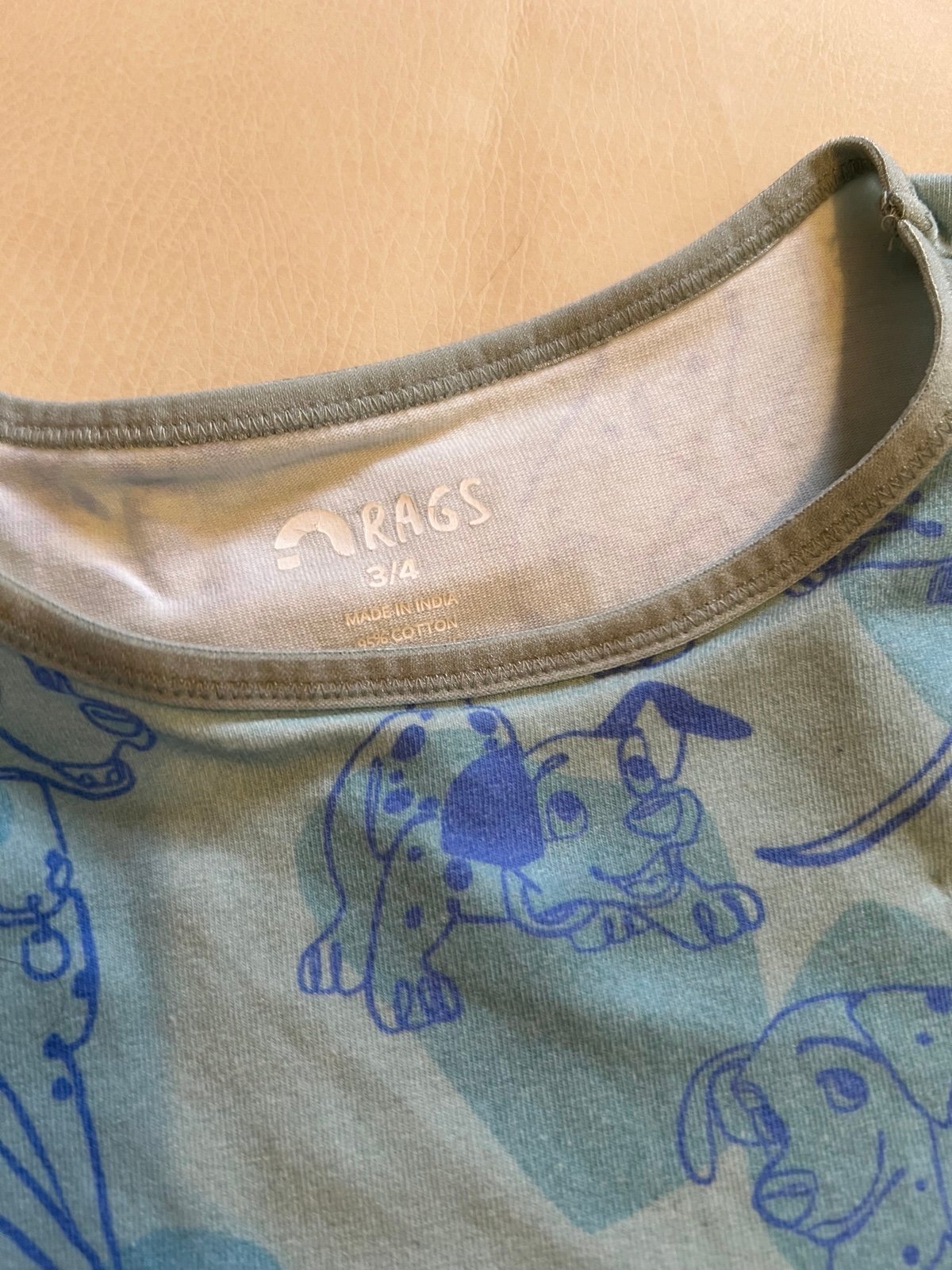 Adorable blue Disney 101 Dalmatians rags to raches romper. Tagged a size 3/4T and so cute! Light blue romper with front pockets… tank and longer shorts style. All over print with the cute puppies from the movie and pongo and perdita. Other clothing for sale so let me know if you want to bundle to save.