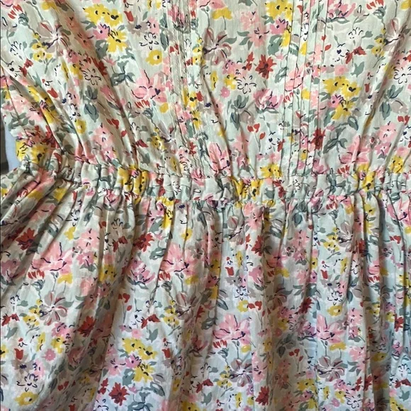This charming sundress by Bonpoint features a delightful pink and yellow floral pattern, perfect for casual outings. The dress boasts a crew neck and puff sleeves with a peter pan collar, adding a touch of vintage charm. Its lightweight fabric and A-line silhouette ensure comfort and style for any casual occasion.
