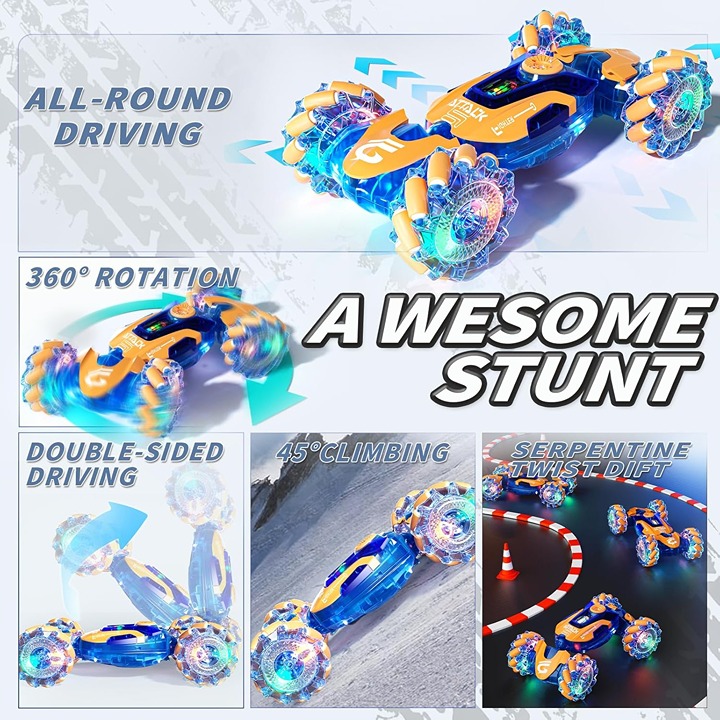 * 【Light & Spray】The stunt car has very cool lights, including body lights, wheel lights, bottom lights, and roof lights. It also has a spray function. Whether it's day or night, it will definitely bring you an excellent gaming experience!