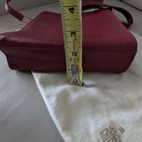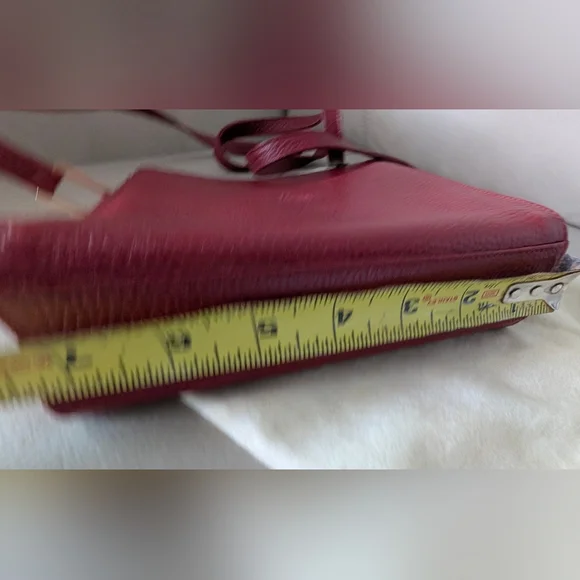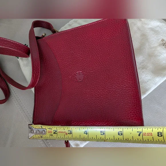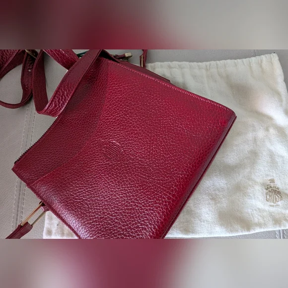 Elevate your style with this stunning Mark Cross crossbody bag, crafted in Italy from luxurious pebbled red leather. This designer piece is in very good used condition and features an adjustable strap with a gold buckle for a customizable fit.dust bag includedDetails:Dimensions: 7.5" W x 7.5" H x 2" DInterior: Clean with tan suede lining, includes a zippered pocket for secure storageExterior: Features pockets on both sides for easy access to essentialsHardware: Gold-tone accentsThis classic and functional Mark Cross bag is perfect for everyday wear or special occasions. Don’t miss out—grab this timeless designer piece today!Bundle & Save! Offers Welcome.