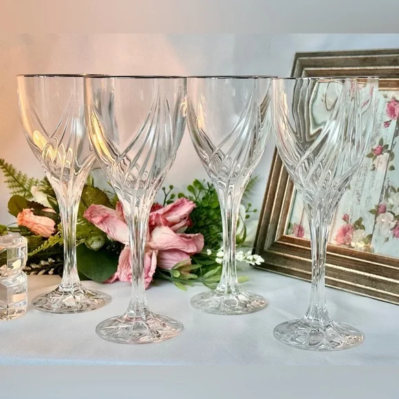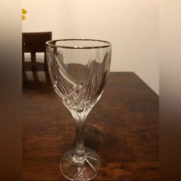 Set of 6. (2/2)Two sets available to make a set of 12. Listed separately to allow for bundling. Have a platinum colored rim. Used about as many times as my Lenox China that I’m also selling on here...12 times max, holidays only. They’re firm and heavy, so not easy to break. No boxes. All are wrapped in newspaper in a box ready to be shipped.I took a picture of one, so as not to have to unwrap and rewrap the other 11 again. Included two stock photos.A flowing, contemporary design distinguishes the Debut Collection. And here, a platinum rim adds an elegant touch. Appropriate for a formal affair as well as a casual get-together, the glass can be used with any platinum-banded china.Crafted of Lenox fine crystalAccented with precious platinumCapacity: 7.5 oz.